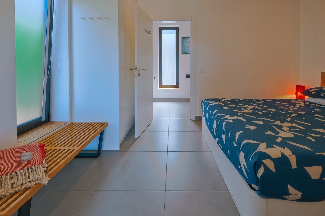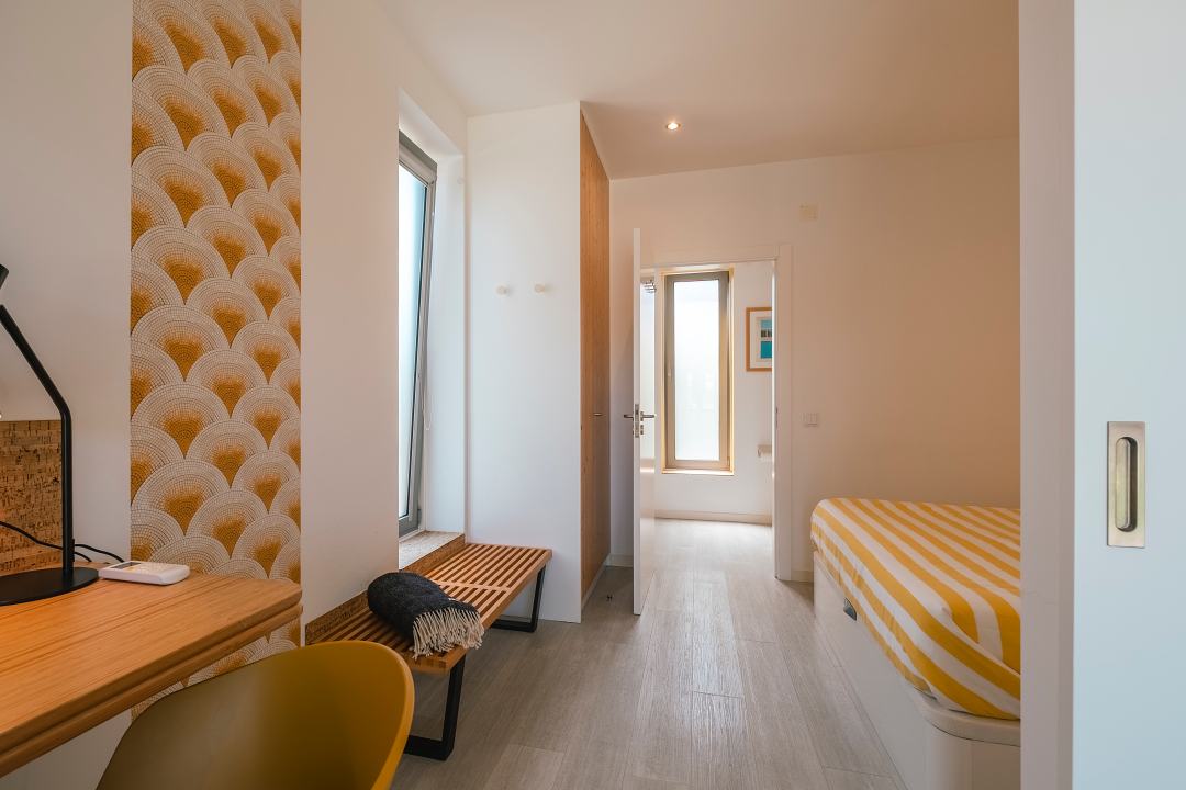 Graças à porta de correr, pode separar a zona de dormir da zona de estar, criando mais privacidade e uma atmosfera mais íntima.