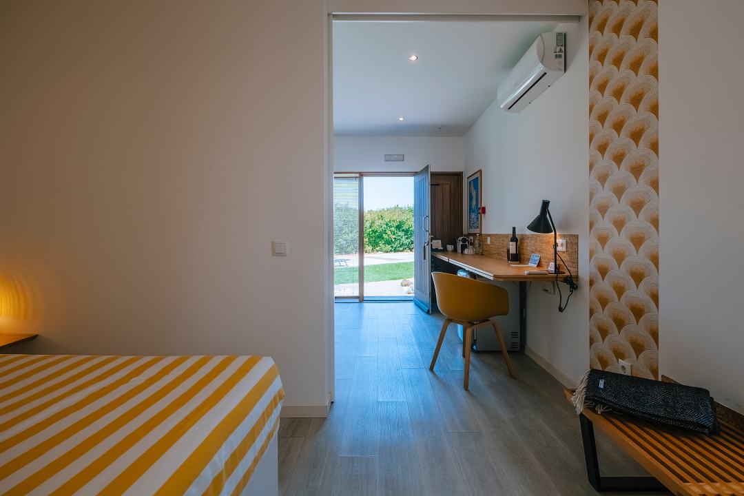Com 32 m² de espaço interior e um terraço privado de 8 m², oferecem uma sensação de amplitude e conforto contemporâneo. Cada suíte é independente, garantindo máxima privacidade. O toque final? Vistas abertas sobre o jardim, a piscina e a vegetação envolvente.